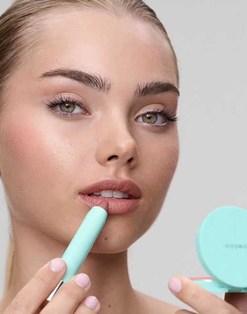 SHOP NOWLipstick in a nude pink shade with a buttery-soft balm formula and nourishing active ingredients, clean, vegan.