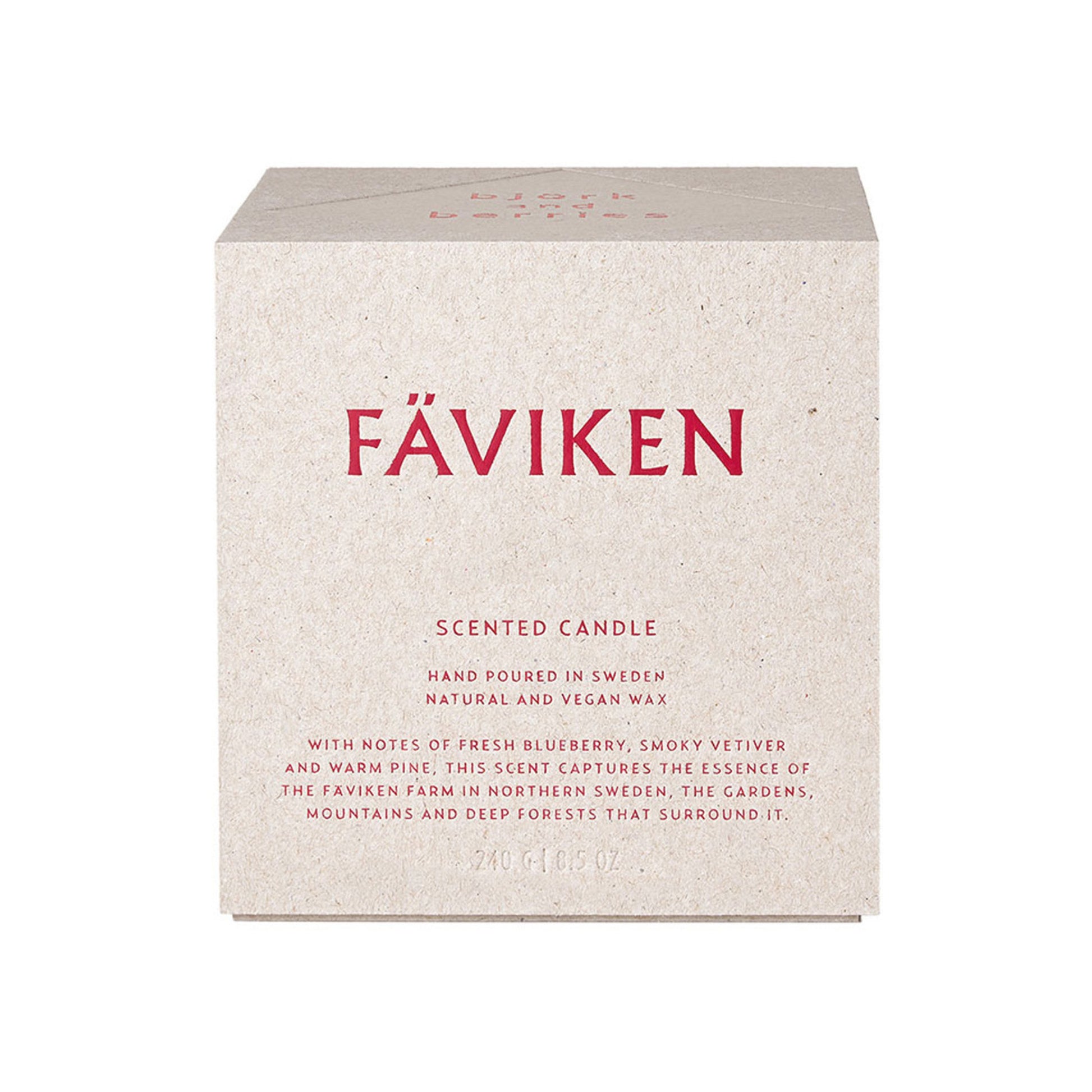 With notes of fresh blueberries, smoky vetiver, and warm pine, this fragrance captures the essence of the Fäviken farm in northern Sweden, the gardens, and deep forests that surround it. In their mountain garden on the Fäviken farm, Björk and Berries cultivate a few select ingredients and experiment with plants and herbs during the harsh northern seasons. The beauty of the deep forests and mountains is a daily inspiration. Top notes: Bergamot, Blueberry. Heart notes: Geranium, Cyclamen, Pine. Base notes: Haitian Vetiver, Cypress, Tuscan Leather. Björk and Berries Scented Candles are inspired by Sweden's ever-changing seasons and the uniqueness of its nature. They are hand-poured locally in Sweden and made with 100% natural and vegan wax.