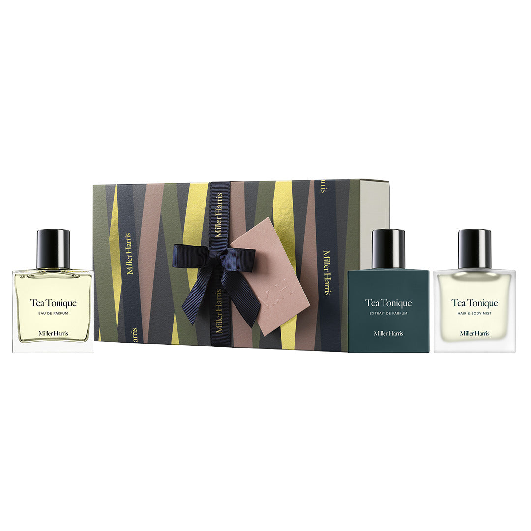 Tea Tonique Eau De Parfum: Ingredients: Alcohol Denat., Aqua (Water), Parfum (Fragrance), Limonene, Linalool, Geraniol, Citral, Citronellol, Isoeugenol, Amyl Cinnamal, Farnesol. Tea Tonique Extrait De Parfum: Ingredients: Alcohol Denat., Parfum (Fragrance), Aqua (Water), Tetramethyl Acetyloctahydronaphthalenes, Citrus Aurantium Bergamia Peel Oil, Limonene, Linalyl Acetate, Acetyl Cedrene, Amyl Cinnamal, Benzyl Salicylate, Camphor, Carvone, Beta-Caryophyllene, Citral, Citronellol, Citrus Limon Peel Oil, Farnesol, Geraniol, Geranyl Acetate, Isoeugenol, Linalool, Pinene, Rose Ketones, Alpha-Terpinene, Terpineol, Terpinolene. Tea Tonique Hair & Body Mist: Ingredients: Alcohol Denat., Aqua, Parfum, Panthenol, Beta-Caryophyllene, Citral, Citrus Aurantium Bergamia Peel Oil, Geraniol, Geranyl Acetate, Hexadecanolactone, Limonene, Linalool, Linalyl Acetate, Pinene, Rose Ketones, Alpha-Terpinene, Terpineol, Terpinolene, Tetramethyl Acetyloctahydronaphthalenes, Pantolactones, Ethylhexyl Salicylates, Butyl Methoxydibenzoylmethane, Ethylhexyl Methoxycinnamate.